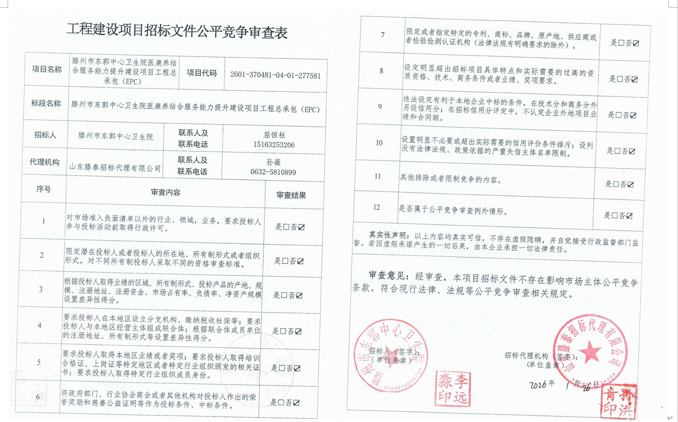 滕州市东郭中心卫生院医康养结合服务能力提升建设项目工程总承包(EPC)招标公告