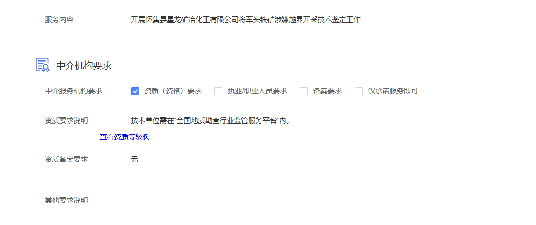 | 资质要求说明 | 技术单位需在“全国地质勘查行业监管服务平台“内。 | ||
